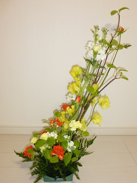 スラントライン型の花を飾っています。