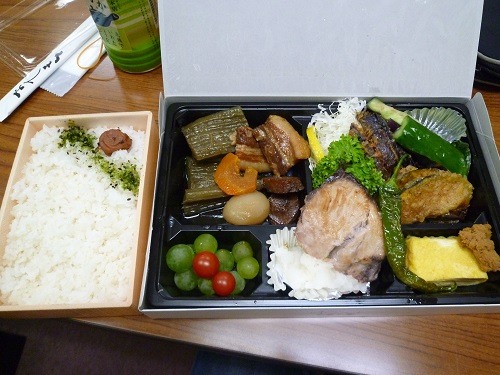 その時お弁当です。角煮とかぼちゃ・ナスの天ぷらでした!