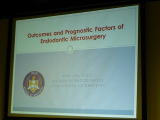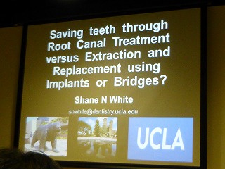 8日(2日目)は会場は青山のタカラベルモントで行われました。講師はUCLAの歯内療法専門医のオールスターです。各先生のが1時間ずつレクチャーしていただきました。もちろんすべて英語での講演ですが、清水先生が丁寧に同時通訳していただいたお陰で私のような英語オンチでも理解することが出来ました。
