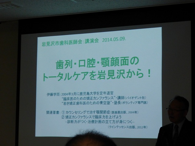 岩見沢歯科医師会主催 学術講習会 投稿日時: 2014年5月9日 投稿者: nao 今日診療後に岩見沢歯科医師会主催の講習会に参加してきました。 講師は元鹿児島大学教授 伊藤学而先生です。内容は『歯列・口腔・顎顔面のトータルケアを岩見沢から』と題して矯正の歴史や姿勢や食生活が歯並びに対する影響等を興味深い内容が盛りだくさんでした。